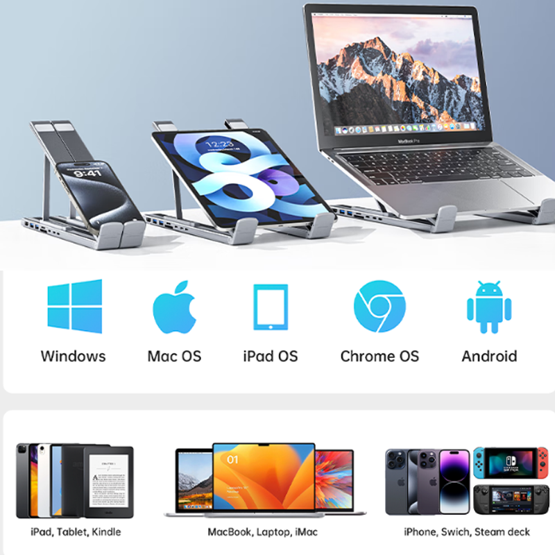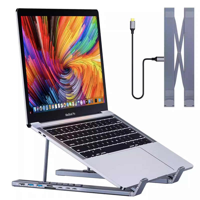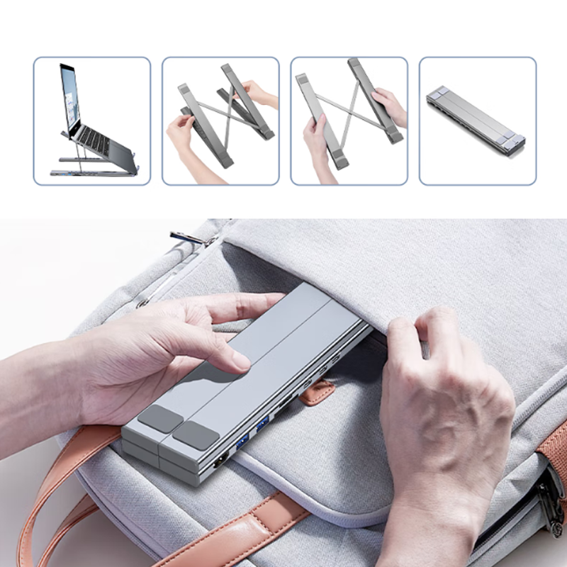 8-in-1 Retractable Laptop Stand Hub – 4K HDMI, USB Ports