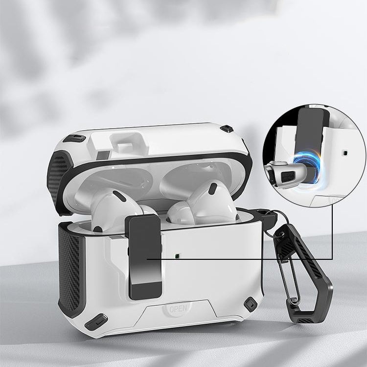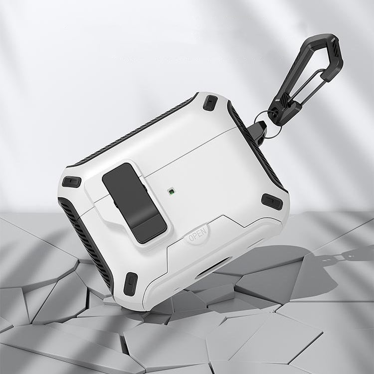 Auto Locking Earphone Case with Phone Stand Support and Quick Release Lid