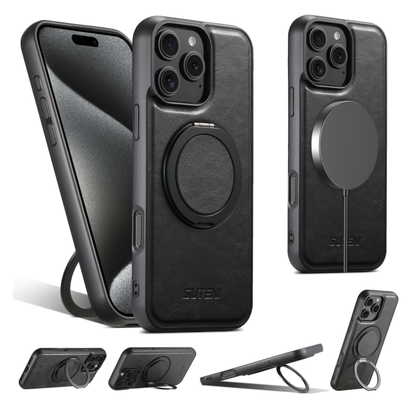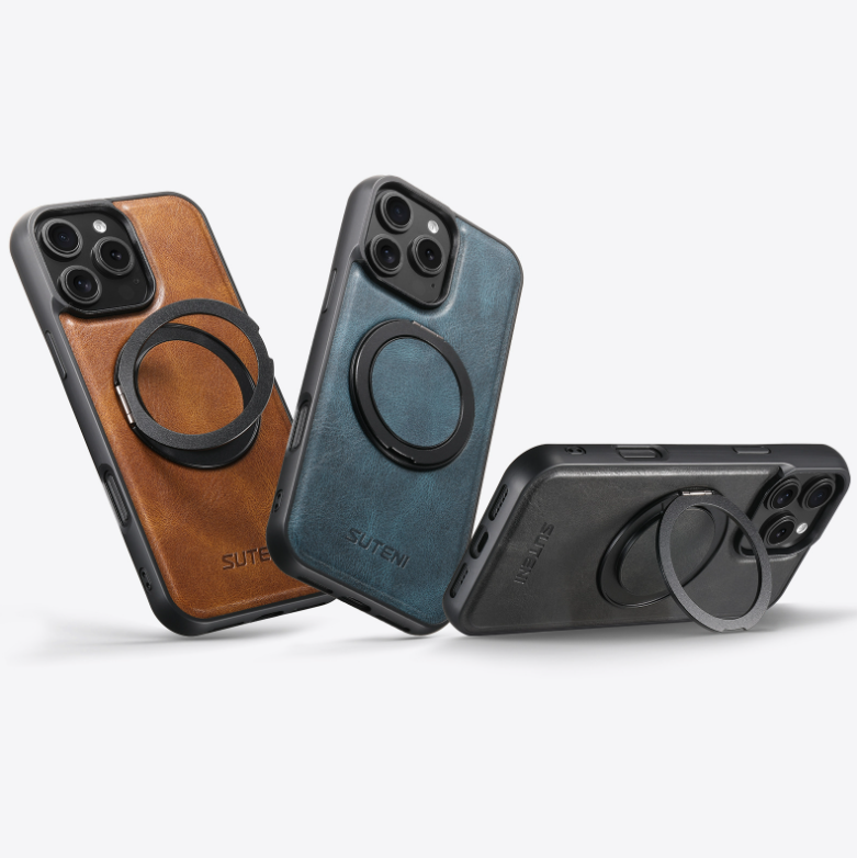 EliteCraft Premium Leather Case – 360° Rotatable Stand & MagSafe Compatible