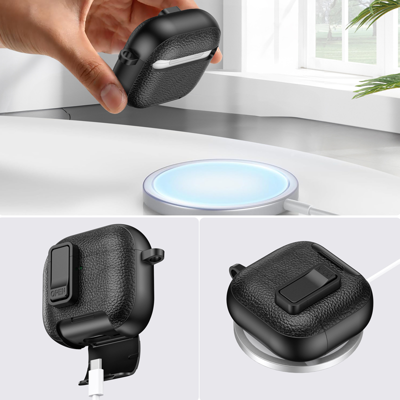 LuxeSnap Leather AirPods Case – Magnetic Charging & Built-in Stand