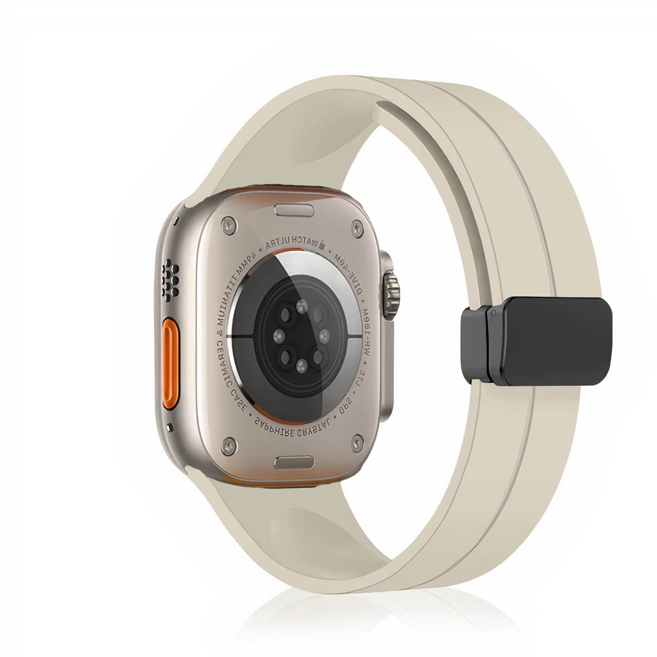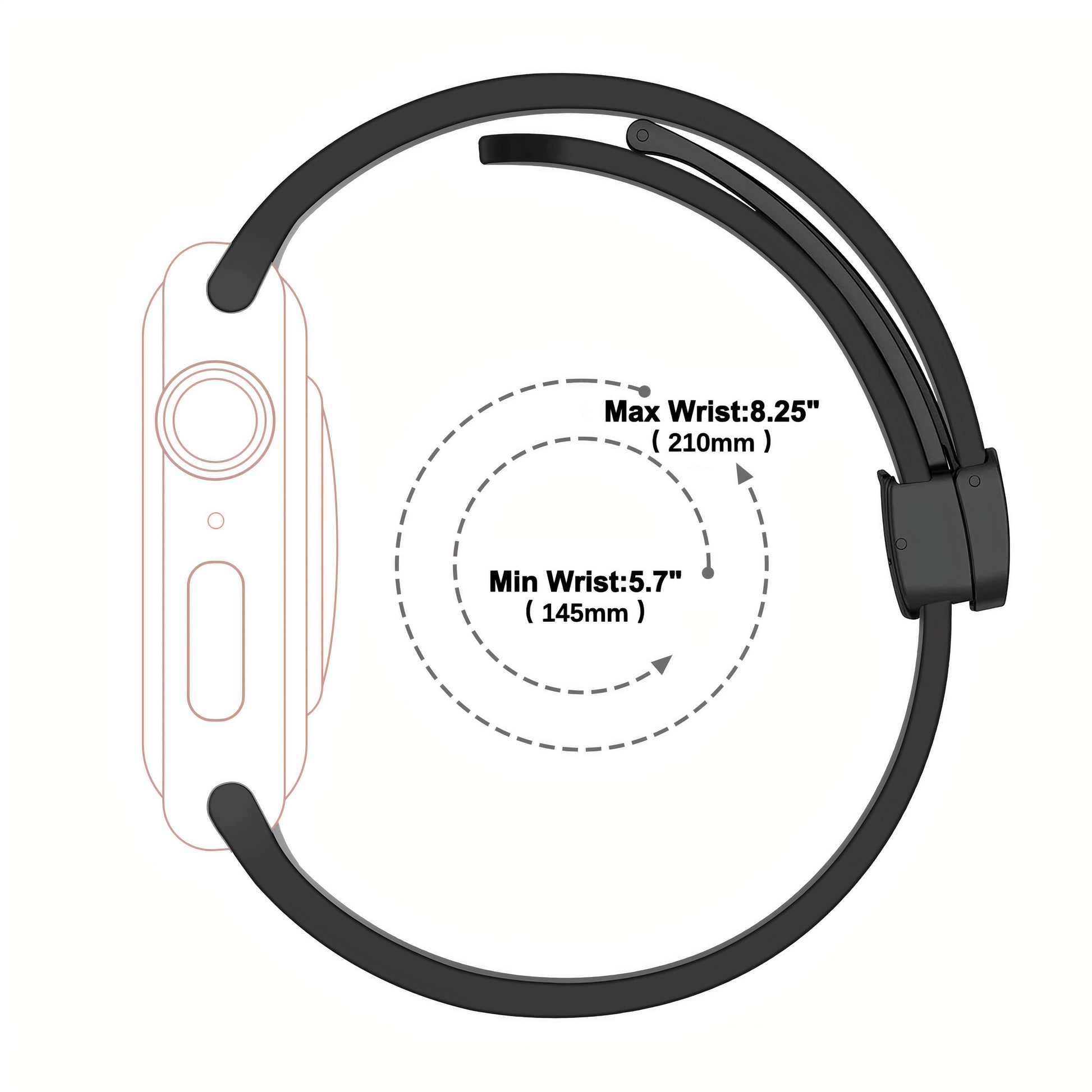 Constructed from durable silicone and featuring a magnetic closure, our band offers both reliability and style. It is compatible with all Apple Watch Series, including Series 1 - 8, SE, and Ultra. Available in sizes 38/40/41mm and 42/44/45/49mm, it fits a wide range of cases.