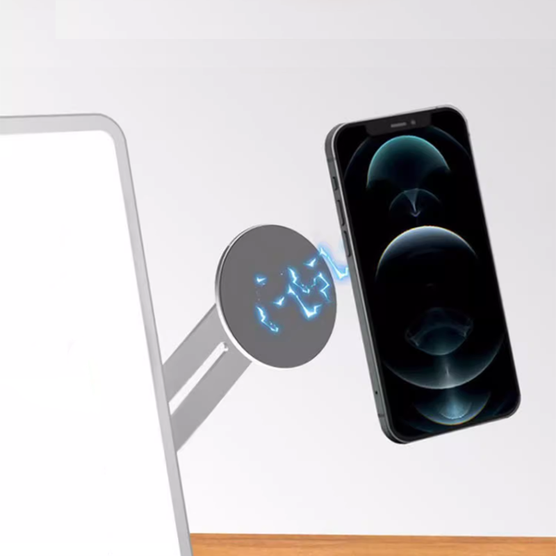 Fully rotatable and foldable arm allows for flexible viewing angles and compact storage.