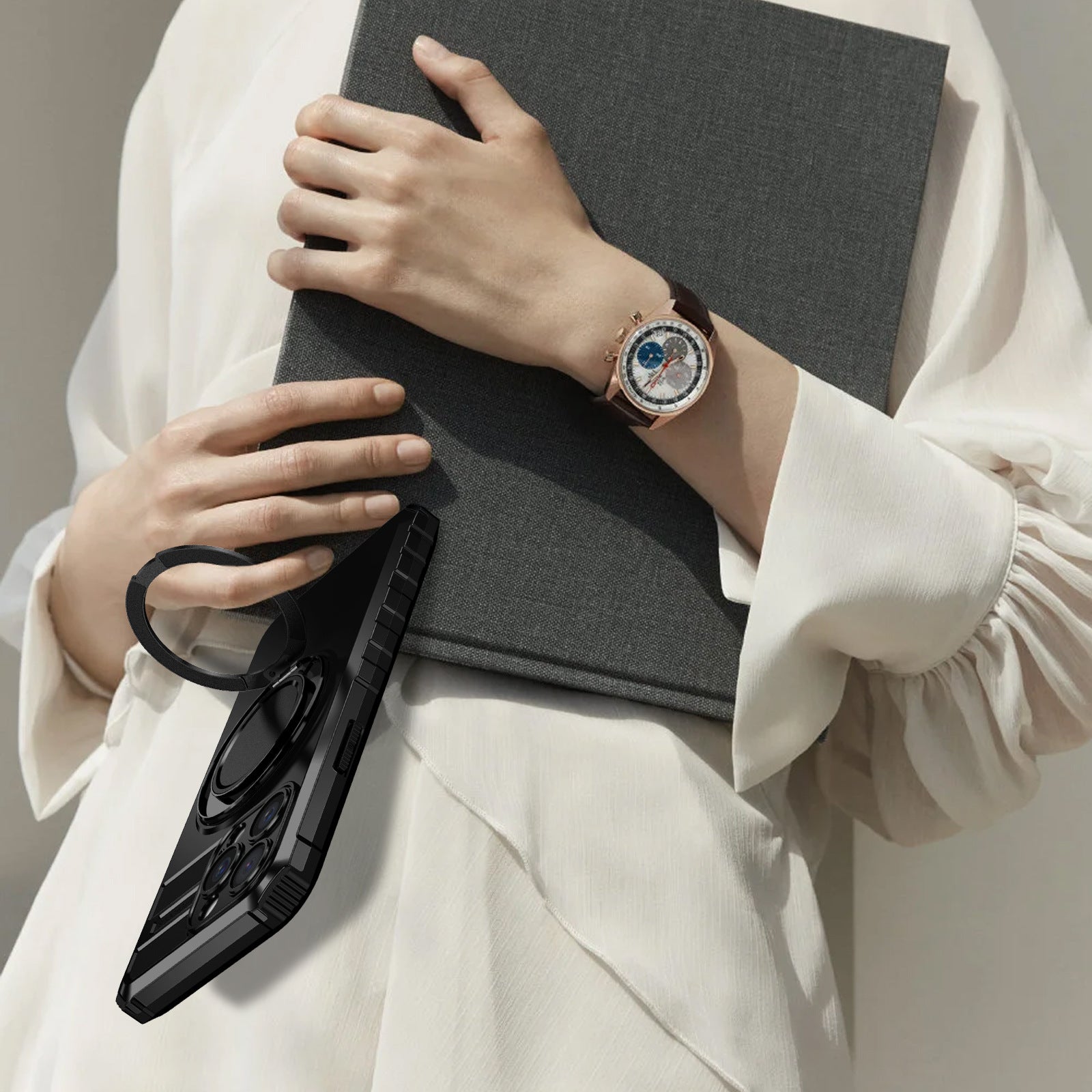 Integrated MagSafe ring for seamless attachment and fast wireless charging with all MagSafe accessories.