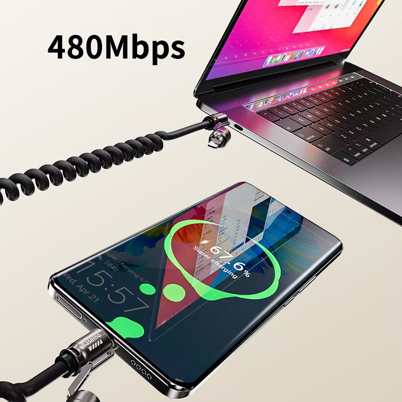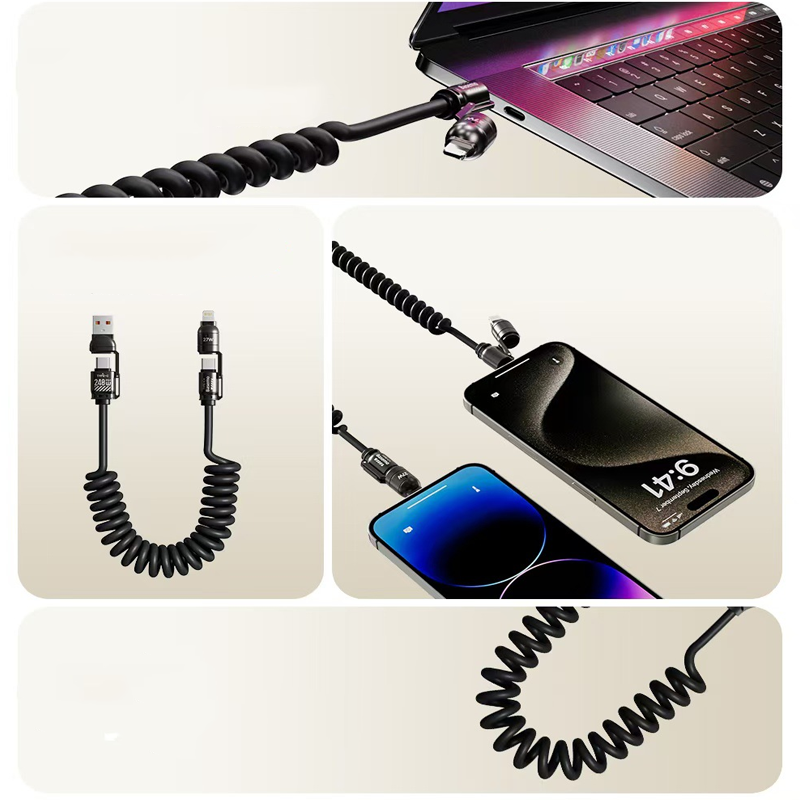TrustCore 4-in-1 Spring Cable – 240W Ultra-Fast Charging, CarPlay Ready
