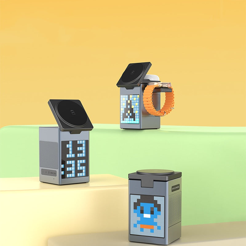 Versatile 6-in-1 Wireless Charger – Clock, Speaker & More!