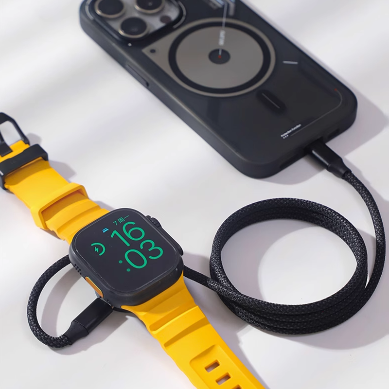 Supports 100W fast charging for USB-C devices and seamless magnetic charging for Apple Watch—all in one cable.