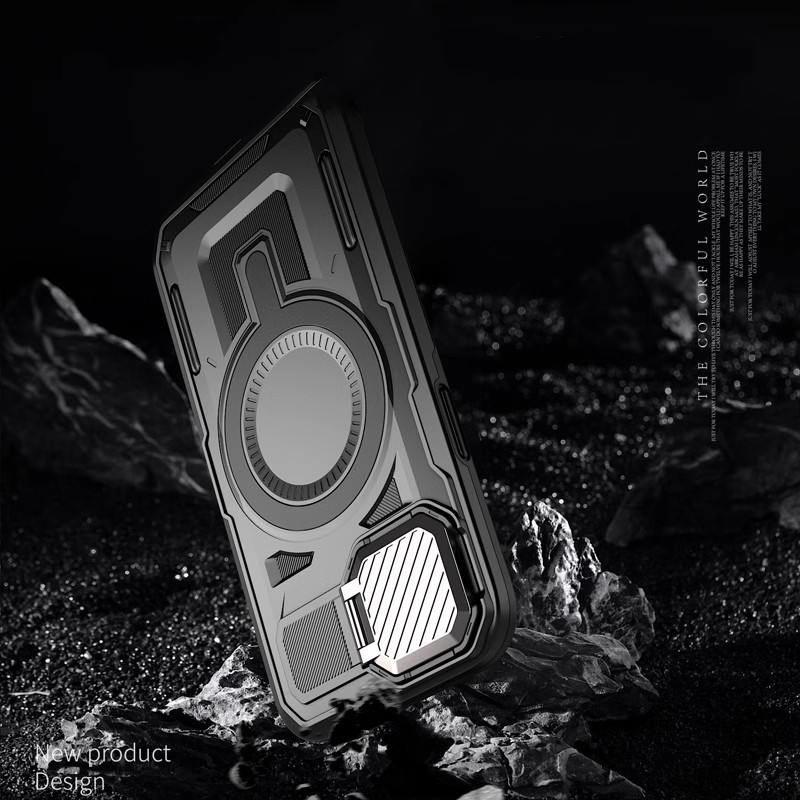 VulcanForce Tactical Mecha Case – Rugged Stand, MagSafe Ready & Camera Armor Design